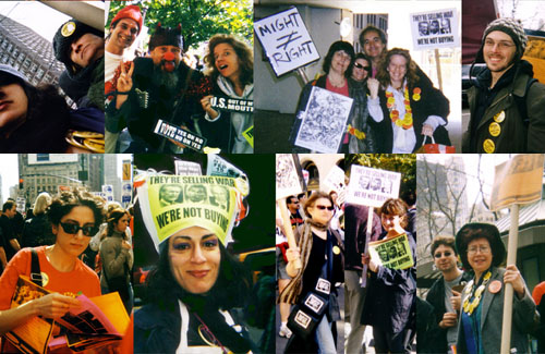 Mouths Wide Open first came together in 2002 to raise our voices and act on our convictions in response to the U.S. invasions of Afghanistan and Iraq. We’re an ad hoc group of theatre artists, musicians, writers, visual artists, and singers. We’re also students, bookkeepers, bookbinders, nannies, carpenters, teachers, fact-checkers, scientists, bike messengers, and flea market mavens. We're committed to fostering open dialogue, creating materials that spread the message of engaged activism, and encouraging others